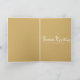 Bold and contemporary, this holiday card pairs geometric elegance with festive warmth. A stylised Christmas tree icon anchors the design against a shimmering gold backdrop, surrounded by abstract shapes—triangles, circles, diagonal lines—and scattered snowflakes that evoke a playful winter rhythm. The central message, “MERRY Christmas”, blends crisp white lettering with flowing cursive, striking a balance between modern minimalism and seasonal cheer. Inside, the greeting “Season’s Greetings TO YOU AND YOUR FAMILY” continues the theme with graceful typography, making this card a sophisticated choice for sending heartfelt wishes with style.