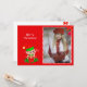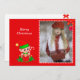 Cute Christmas elf and girl with gift box Christmas Card. Text and photo can be customised.