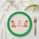 Modern cute Christmas elves on green and ivory Paper Plates.