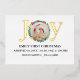 Modern Christmas Gold Joy Wreath Baby Announcement