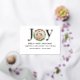 Modern gold joy wreath birth announcement card with hand lettered font that says "joy" You can include a picture of your newborn baby in the centre and baby stats at the bottom.