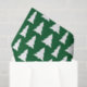 Modern Christmas pattern tissue paper features white geometric trees in varying sizes on a green background. Perfect for the holidays.