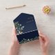 This modern Christmas greenery | navy seal and send all in one invitation is perfect for your simple boho winter wedding. Designed with geometric faux gold foil and minimalist botanical watercolor with touches of green eucalyptus and red winterberry. All on a classic navy blue background. These elements give it a modern yet elegant feel sure to complete the look you're going for! You can personalise with your own photos or keep it as is. Make sure to look through the rest of the collection to complete your wedding theme!