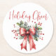 Modern Christmas Holiday Cheer Script Red Bow Round Paper Coaster