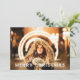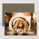 Full photo modern personalizable holiday card for Christmas with white text overlay on the front. Add your favourite holiday photo to the front of the card and optional personalise with your custom message and signature on the back side. The back side is grey. Great for young single people.