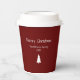 Modern Christmas red party paper cup, with a simple evergreen and customisable typography design. A festive addition to your dinner table this holiday season.