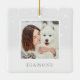 Celebrate the magical and festive holiday season with our custom holiday pet photo ornaments. Our modern elegant holiday design features a minimalistic three photo holiday collage grid layout with a modern white paw print with monogram design placed in the centre of the three photo collage layout. Customize with monogram. The reverse side of the holiday photo ornament features one single photo in the middle with pet's name and light grey ombre background and snow falling. You can customize the text size, text colour, font and layout for your own personal design preference.