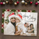 Modern holiday design with editable text fields for your greeting and personalisation, background photo and additional small inset photo.