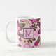 Modern Christmas Pink Floral Monogram Holiday Coffee Mug