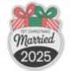 Celebrate your first Christmas as a married couple with this fun and modern design! It features two brightly coloured gift boxes with festive red and green bows. The design prominently displays the text "1ST CHRISTMAS Married" and the year "2025" in a stylish, bold font combination. This makes for a perfect keepsake to commemorate your special milestone. A wonderful and cheerful addition to your Christmas tree and a great gift for any newlywed couple.