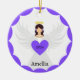 Modern Christmas Purple Angel Heart Custom Name Ceramic Ornament