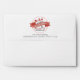 This design features a modern Christmas envelope, with a simple holiday, cute minimalist, a retro vintage design, with return address, Santa Claus, reindeer sleigh rides, the north pole theme, with please deliver to in a minimalist script font.
