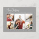 Modern Christmas | Silver Script Five-Photo Holiday Postcard