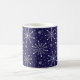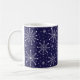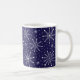 Modern festive Blue and white Christmas coffee or hot cocoa mug. White snowflakes on blue. Elegant design fit for a Merry Christmas and a snowy winter new year celebration. This mug is a modern home decor item that makes a stylish, cute Christmas gift or stocking stuffer.