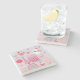 The coasters are gorgeous, a quality feel and heavy weight. They look like a precious archeological find. A rustic stone juxtaposed with a modern floral black and white print. I like the way the print goes slightly imperfect on the cut stone edges giving them a kind-of natural beauty.