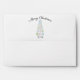 This envelope features three non-traditional colour Christmas ornaments in pastel green, pink, and blue with white stars. The ornaments are stacked and staggered in size to form a Christmas tree shape over a white background. Fill in the template fields, remove any text or click customise to select a typeface colour, size, and style your prefer.