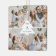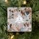 Celebrate the magical and festive holiday season with our custom holiday photo ornaments. Our modern elegant holiday design features a modern and minimalistic four photo holiday collage grid layout with a modern white Christmas tree design place in the centre of the four photo holiday photo layout. Customised with name, monogram and year The reverse side of the holiday photo ornament features one single large photo. You can customise the text size, text colour, font and layout for your own personal design preference