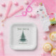 Modern Christmas Tree Personalised Green White Paper Plate