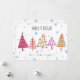 end a personalised whimsical holiday card to family and friends this season. This design features whimsical watercolor Christmas trees in red, green and pink with blue snowflakes. It reads, "Merry & Bright". Below in black text is your family name to personalise. Designed by world renowned artist ©Tim Coffey.