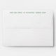 A charming and minimalist envelope for sending your holiday cards, there is a sleek graphic of three trees, four helpful lines for handwriting addresses and a convenient pre-printed return address on the back flap. The interior features a printed, cosy buffalo plaid pattern in black and green.