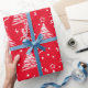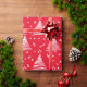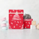 A Modern Hand Drawn Design Wrapping Paper Of White Christmas Trees On Red