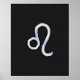 A silver chrome like Leo zodiac symbol on a black snake skin style decor background. A great urban automotive classy looking birthday gift idea.