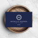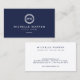 Your initials are set in a modern double-outlined circle logo. The crisp, white text and deep blue background give this card an elegant and classic look. © 1201AM CREATIVE