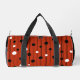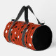 Stylish gym & duffle bag design features an abstract circle pattern in black and white on a modern red background.  Finished in matching black trim, there is a template for a custom name, initials or short text in classic white typography on one end of the bag.  Custom colour requests accepted.