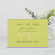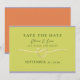 Announce your wedding in bold, modern style with this citrus green save the date card featuring elegant orange and purple accents inspired by the trending palettes: Citrus Green, Going Bold, and Sunset Glow. The design includes a minimalist gold rope-heart motif, clean typography, and a vibrant colour scheme perfect for couples who love joyful, expressive stationery.