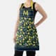 Modern Citrus Lemons Pattern Script Monogram Apron
