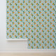 Fill your space with the charm of this lovely Peel & Stick wallpaper. This modern and bold orange botanical pattern on a soft blue background. Unique shapes create a sweet citrus pattern.