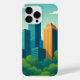 Protect your phone in style with this unique iPhone cover featuring a modern cityscape illustration. Tall skyscrapers rise above lush green trees, blending urban life with the calm beauty of nature. This sleek and durable case offers a perfect balance of protection and aesthetic design, making it ideal for city lovers, architecture fans, and anyone who enjoys modern minimalist art.