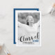 Modern Class of 2023 script classic blue border photo invitation/announcement. It features a photo of the graduate and the text "Class of 2023 in black and blue.