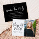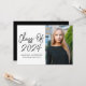 Modern graduation party invites featuring "Class of 2024" in a black handwritten script on a white background. Personalize the front of the graduation invite by adding the graduate's name, school name, and vertical photo. The invite reverses to display your graduation party details in white lettering on a black background.