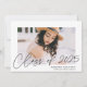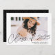 Celebrate the grad with our stylish photo graduation announcement. The graduation announcement displays the graduate's photo with "Class of 2025" in a black modern calligraphy script overlay. Personalise the front of the modern graduation announcement by adding the graduate's name and school name. The announcement reverses to feature a trendy black and white dotted geometric pattern. The design is perfect for both high school and college graduates.