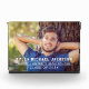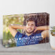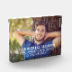Celebrate your graduate with this modern graduation photo block. Simple design features a senior portrait of your grad with white striped overlay wording in varsity sports style lettering that can be personalised with the graduates name, school, and class year. Makes a beautiful keepsake to display in your home.