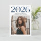 Announce your graduate’s achievement with a sophisticated Class of 2025 graduation announcement! This elegant single-photo design features bold navy "Class of 2025" lettering with subtle black script accents, creating a striking contrast against the white background. The front showcases one standout senior photo, perfect for highlighting your graduate’s accomplishment. The back includes an additional photo and space for a personalised message. Ideal for high school and college graduates, this customisable graduation announcement is a timeless way to celebrate this special milestone. Personalise yours today!