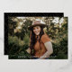 Celebrate the grad with our stylish photo graduation announcement. The graduation announcement displays the graduate's photo with "Class of 2025" in a real gold foil calligraphy script overlay. Personalise the front of the modern graduation announcement by adding the graduate's name, school name, and graduation year. The announcement reverses to feature a trendy black and white dotted geometric pattern. The design is perfect for both high school and college graduates.