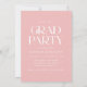 Invite family and friends to celebrate the grad with these stylish photo graduation party invitations! The trendy design features "Class of 2025 Grad" in bold pink lettering with subtle script accents with a solid white background. The graduate's vertical photo is displayed inside an oblong frame at the centre of the invitation. Personalise the front of the pink graduation invitation with the graduate's name and school. The invite reverses to display your graduation party details in white with a pink background. This grad party invite is perfect for high school and college graduates.