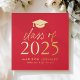Celebrate the accomplishments of the Class of 2025 with this stylish square graduation guest book. Featuring a striking gold foil graduation cap at the top, paired with "Class of 2025" in bold gold foil lettering on a vibrant red background, this guest book exudes elegance and school spirit. Personalise the front with the graduate's name and school year for a unique touch. The spine is also customised with the graduate's name and graduation year, creating a memorable and cohesive design. The back of the guest book showcases the graduate's full-bleed square photo, adding a personal and sentimental element. Perfect for high school or college graduations, this guest book is a beautiful way to collect heartfelt messages and preserve precious memories from friends and family.