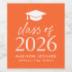 Add a personalised touch to your graduation party with these modern graduation wine labels! The wine labels feature a white graduation cap at the top of the design with "Class of 2025" displayed in bold white lettering on an orange background. Personalise the orange graduation wine label with the graduate's name, school, and graduation year. This design is perfect to use for wine, sparkling cider, or other beverages at high school and college graduation parties!