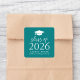 Seal your envelopes and graduation favour bags with these modern graduation stickers! The stickers feature a white graduation cap at the top of the design with "Class of 2025" displayed in bold lettering on a teal background. Personalise the teal graduation sticker with the graduate's name, school, and graduation year. This design is perfect to use for high school or college graduations.