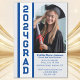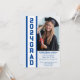 Bold and modern Grad invitation works for Middle School, High School, or College. Feature your smiling Grad with a banner in your blue and white school colours. Grad party info can be added at the bottom! Part of the Graduation! Collection, look for a whole suite of Grad products.