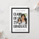 Your graduate's photo, surrounded by large bold lettering "CLASS OF 25 GRADUATE", finished with your name and high school. On the back, you can share a story or the graduate's bio of interests and activities, or delete the text and leave blank. Add your own photo and other details by following the "Personalise" link. The black and white colours can also be changed, to match your graduate's school colours, by using the edit menu. If you would like assistance, please feel free to reach out to me via email at susanmingaydesigns@gmail.com
