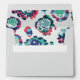 Colour editable beige wedding envelope with return address, and modern classic abstract floral liner in fresh green, blue and red, stylish and elegant. Great for modern classic wedding in spring and summer.