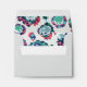 Colour editable beige wedding RSVP envelope with modern classic abstract floral liner in fresh green, blue and red, stylish and elegant. Great for modern classic wedding in spring and summer.