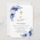 Modern Classic Blue Flowers Cross Boy Mi Bautizo Invitation