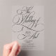 Modern classic calligraphy script clear wedding acrylic invitations