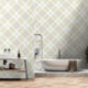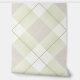 This peel and stick wallpaper features a modern take on the classic gingham style picnic plaid pattern in pale light green and mauve pink.