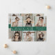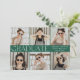 Share your graduation milestone with this modern minimalist announcement featuring a 12-photo collage to showcase your favourite memories. The front displays six square photos with "Graduate" in sleek white modern lettering on a stylish green background, while the back offers space for six more photos along with customisable text for future plans, graduation party details, or a personal message. Personalise with your name, school, and graduation year to create a unique keepsake. Perfect for both high school and college graduates, this multi-photo design is a beautiful way to celebrate and announce your achievement.